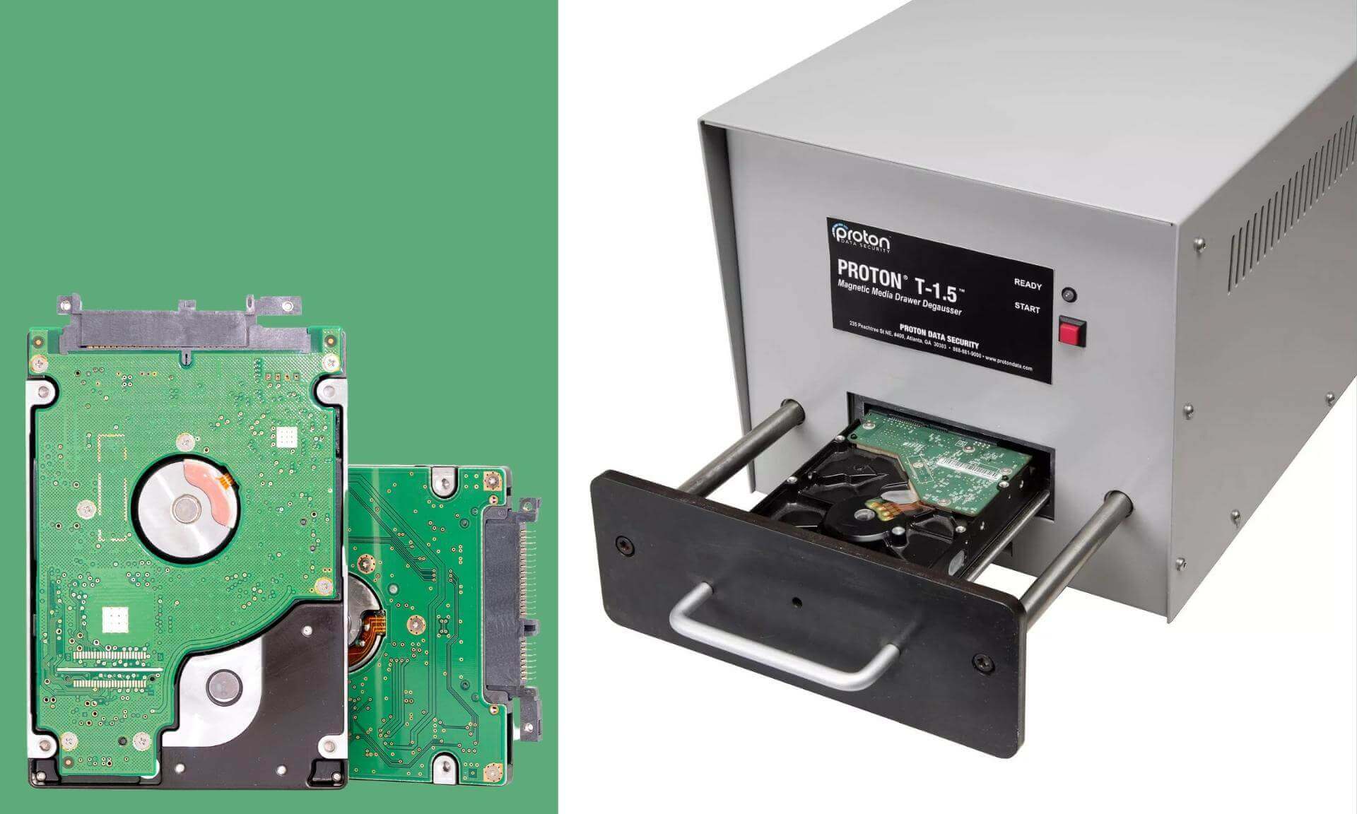 Hard drive degaussing is the process of permanently destroying data stored on hard drives or other magnetic media such as audio and backup tapes. Degaussing, a common method of data destruction, is a guaranteed method of hard drive destruction.
